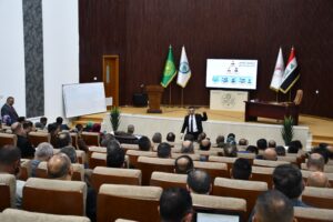 In an effort by our university, represented by its president, Dr. Aliya Abbas Ali Al-Attar, to develop and enhance the capabilities of teaching staff in Iraqi universities, and its impact on the quality and development of education to a level that matches international universities, Assistant Professor Fawaz Fadel Ali, Director of the Scientific Affairs Department at our university and a member of the executive committee and the experts committee in preparing the curriculum for modern teaching methods towards integrated learning, participated with a group of experts and trainers from various Iraqi universities in delivering a number of lectures in person and electronically as part of the course organized by the Ministry of Higher Education and Scientific Research / Department of Studies, Planning, and Follow-up. The duration of the course was one month, hosted by the University of Kufa in the city of Najaf Al-Ashraf for the in-person part of the course, which lasted for two separate weeks. During the course, several concepts and strategies of teaching and learning were addressed according to modern systems supported by e-learning, as well as strengthening the basic pillars for developing education in Iraqi universities, including fundamental concepts of education, instructional design, assessment, evaluation, facilitation strategies, development of digital content, quality of education, professional ethics, scientific publishing, and scientific research methodology. The training lecture delivered by Dr. Fawaz Fadel Ali focused on the ethics of scientific research and the basic principle for forming local and international research teams.