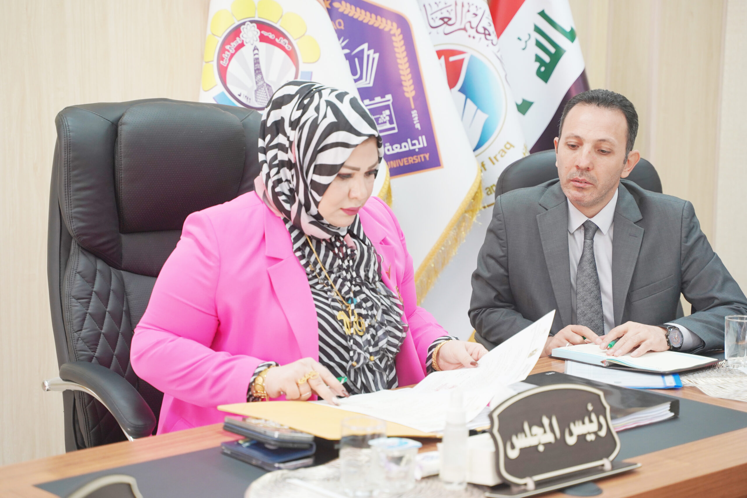 The President of the Northern Technical University, Prof. Dr. Alia Abbas Ali Al-Attar, chaired the second session of the University Council for the morning and evening studies, in the presence of the Assistant President of the University for Scientific Affairs, the session rapporteur, the Assistant President of the University for Administrative Affairs, Prof. Dr. Thanoon Yonis Thanoon, and all members of the session.