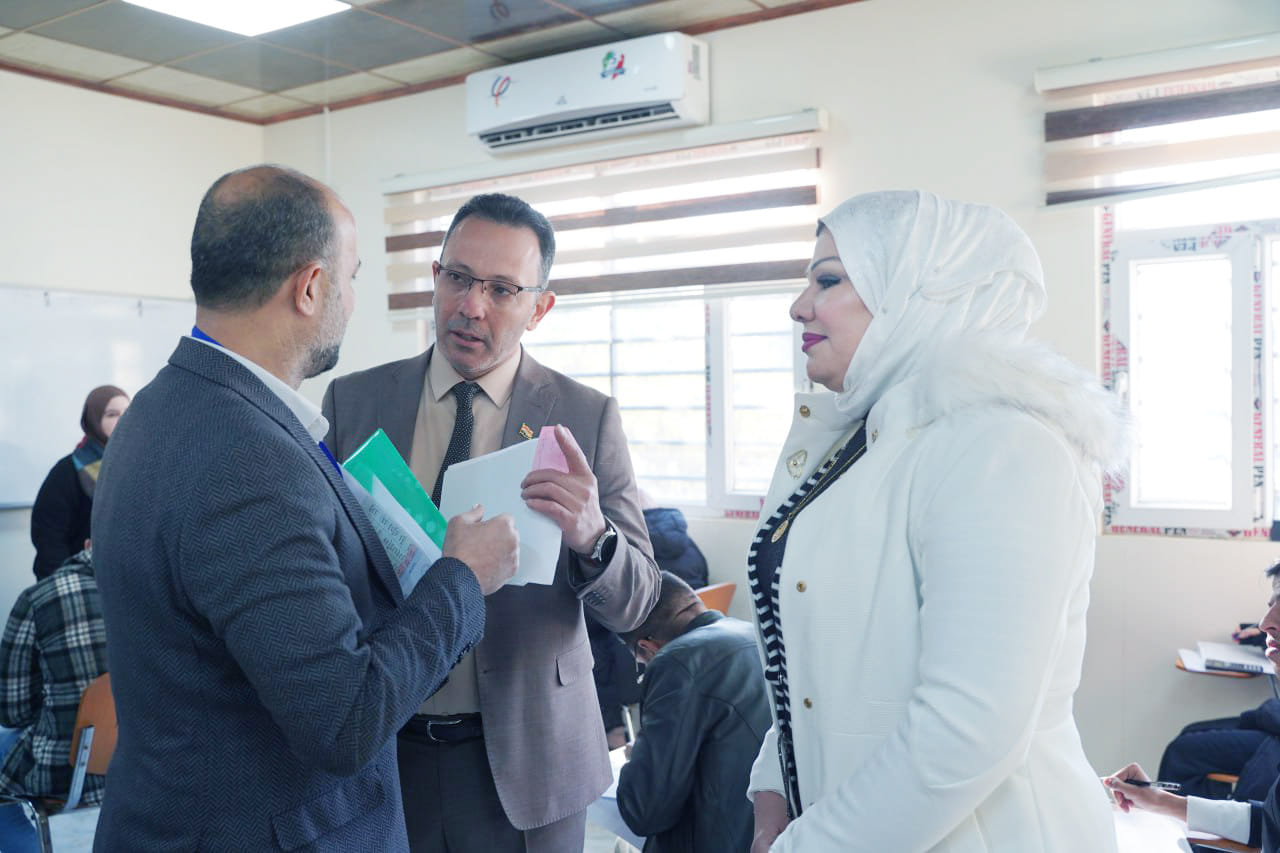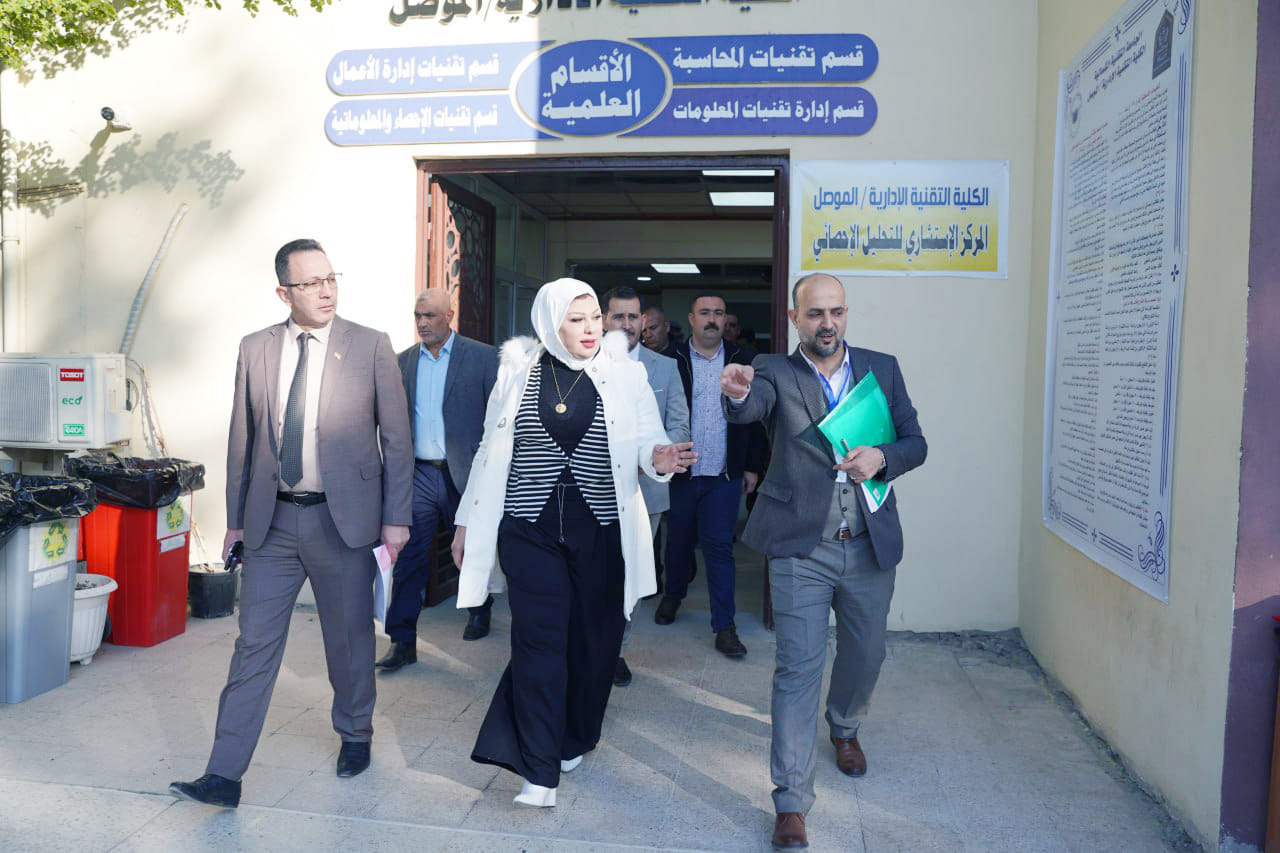 Since early morning, the President of Northern Technical University, Prof. Dr. Alia Abbas Ali Al-Attar, followed up on the progress of the exams – within the central committee responsible for following up on the progress of the exams in the Technical Administrative College – immediately after the success of her tour in the Saltanat Oman. She met the members of the examination committee and listened to the students’ opinions about the level of the questions and the extent to which they covered the curricula. The students expressed their pleasure with the interest of the President of the University who promised to remove obstacles and to ensure that the exams proceed successfully.