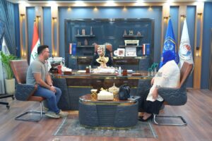 The President of the Northern Technical University, Prof. Dr. Alia Abbas Ali Al-Attar, honored in her office today the Director of the PERMA II Project funded by the French Development Agency, Mr. Zaid Suhail Khattab, in the presence of Engineer Wasan Waad, Deputy Director of the Project. During the meeting, the progress of the projects in which the Northern Technical University participates, future plans, and ways to develop the relationship with the French organization were discussed. The President of the University thanked the project staff for the near completion of their project, as the organization staff expressed their sincere thanks for the unlimited support from the presidency of the Northern Technical University throughout their assignment period.