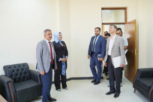 The President of the Northern Technical University, Professor Dr. Alya Abbas Ali Al-Attar, received the delegation in her office in Kirkuk. During the visit, they reviewed the logistical procedures that would create a suitable university environment for the students.