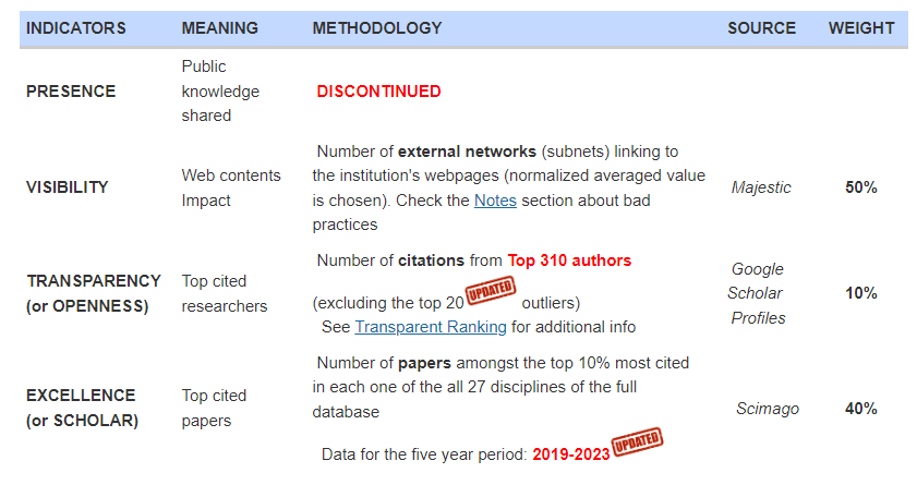 Work is ongoing to improve the university’s position by improving the university’s website and scientific research based on the classification criteria listed below: